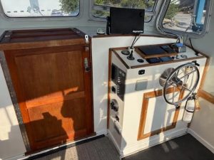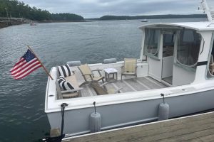 FROM AWAY is a classic Downeast-style power boat built by Crowley-Beal in 2004. Recent improvements include a Volvo D6 diesel engine, hull Awlgrip, bottom strip and repaint, and Raymarine helm electronics package. Boat is currently in Mount Desert, Maine. Please contact us for a viewing today.